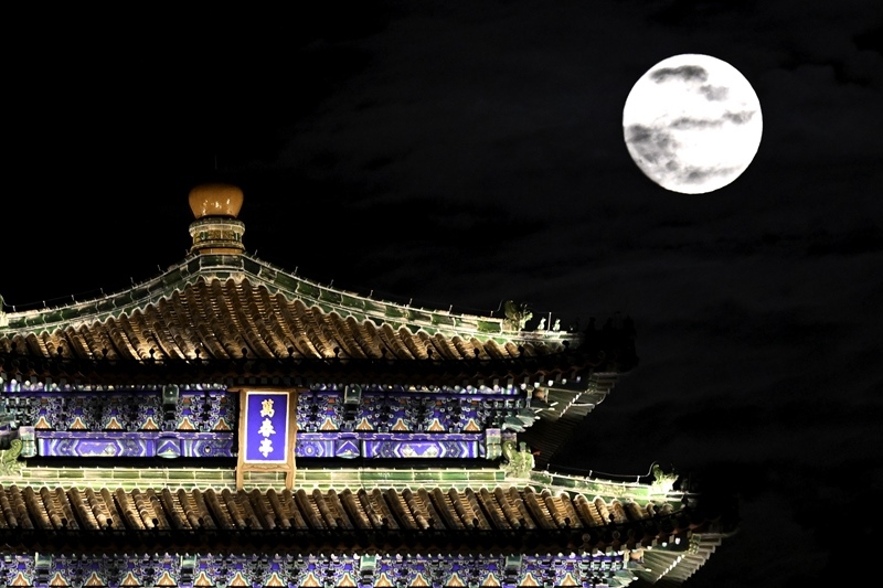 這是10月6日在北京故宮角樓附近拍攝的月亮。