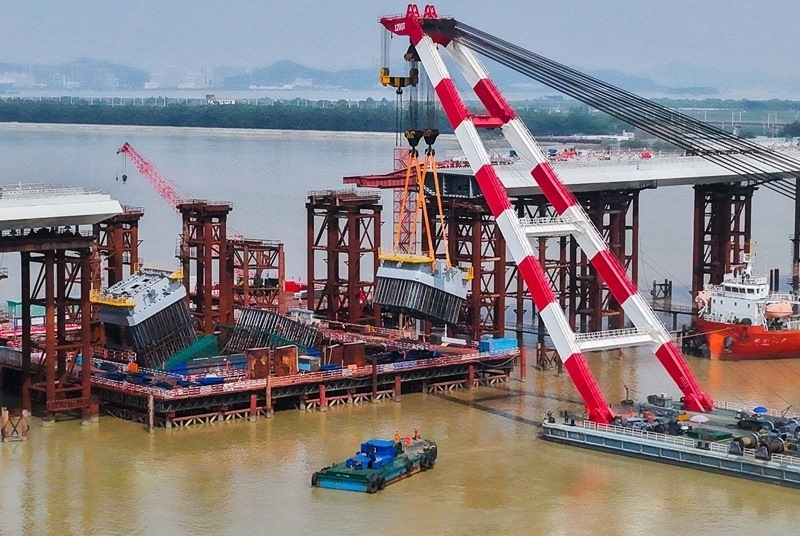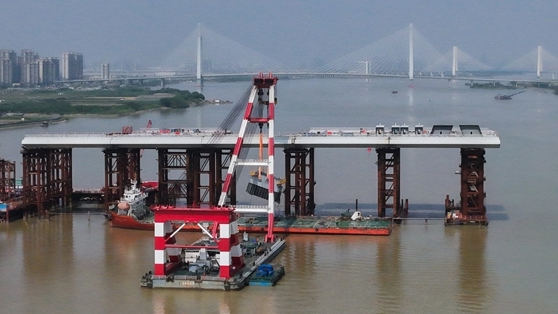 10月10日,由中鐵建大橋局承建的萬(wàn)龍大橋吊裝架設(shè)首節(jié)段主塔。位于廣州南沙區(qū)的萬(wàn)龍大橋跨越珠江口龍穴南水道,全長(zhǎng)5146米,主橋長(zhǎng)1150米,主跨608米,為粵港澳大灣區(qū)又一世界級(jí)橋梁。