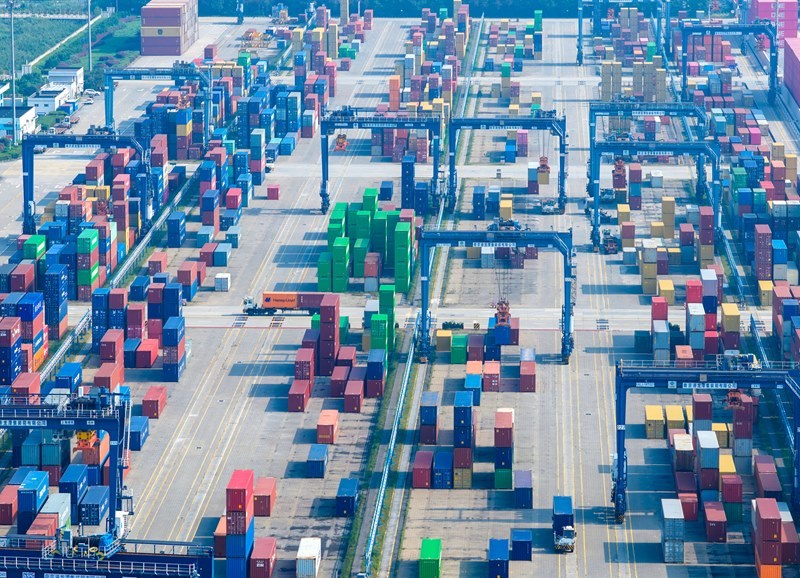 10月13日在山東港口青島港拍攝的外貿(mào)集裝箱碼頭(無(wú)人機(jī)照片)。