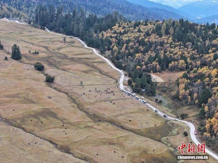 10月28日,魯朗高山牧場(chǎng)(無(wú)人機(jī)航拍)。貢嘎來(lái)松 攝