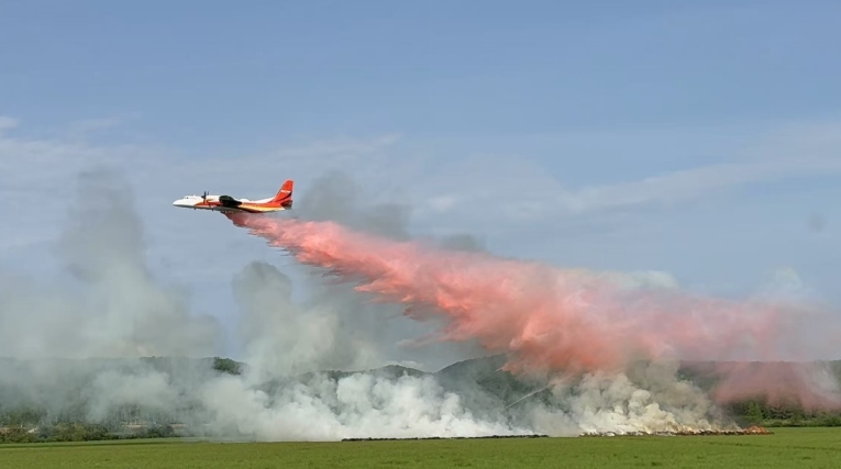 我國(guó)經(jīng)過(guò)三年自主攻關(guān)研制出的新舟60滅火飛機(jī)滅火實(shí)戰(zhàn)場(chǎng)景。新舟60滅火飛機(jī)最大載水量6噸,滿載作業(yè)半徑600公里,填補(bǔ)了森林草原滅火大飛機(jī)的空白和短板。應(yīng)急管理部供圖
