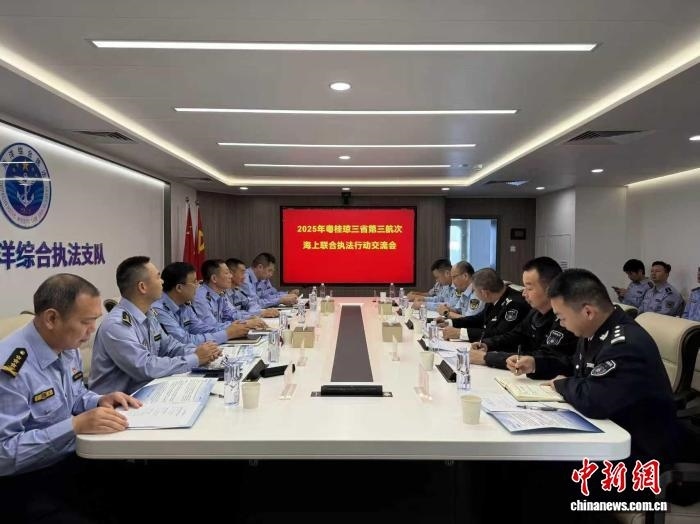 11月12日,粵桂瓊?cè)?區(qū))第三次海上聯(lián)合執(zhí)法行動(dòng)交流會(huì)在中國(guó)漁政44002船召開(kāi)。廣東省海洋綜合執(zhí)法總隊(duì) 供圖