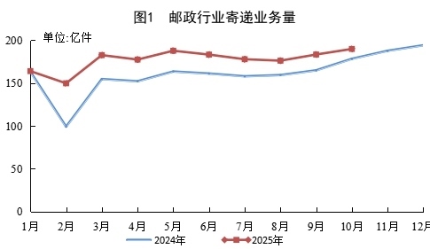 10月份,郵政行業(yè)寄遞業(yè)務(wù)量完成189.9億件,同比增長(zhǎng)6.5%。其中,快遞業(yè)務(wù)量完成176.0億件,同比增長(zhǎng)7.9%。