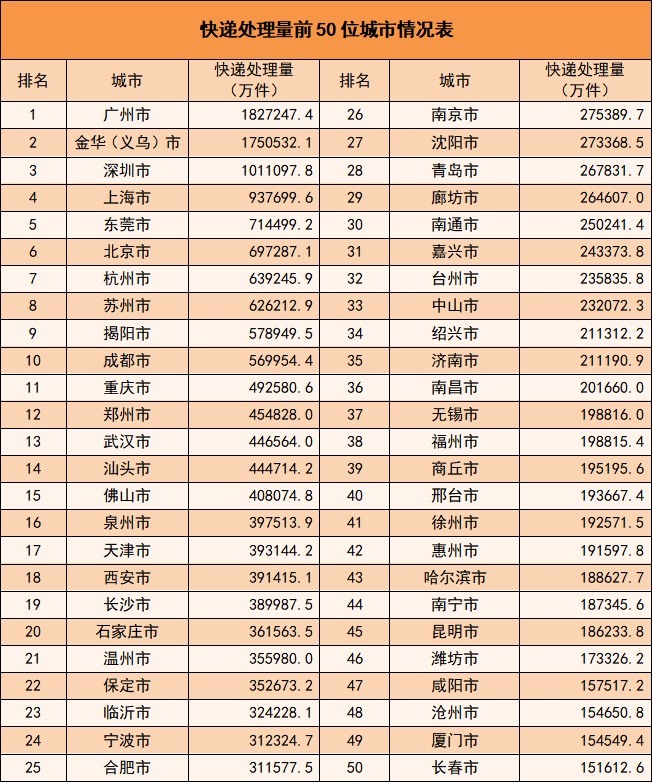 注:快遞處理量=快遞業(yè)務(wù)量+快遞投遞量