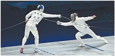 運動員在十五運會擊劍項目男子重劍個人決賽中。本報記者 王 亮攝
