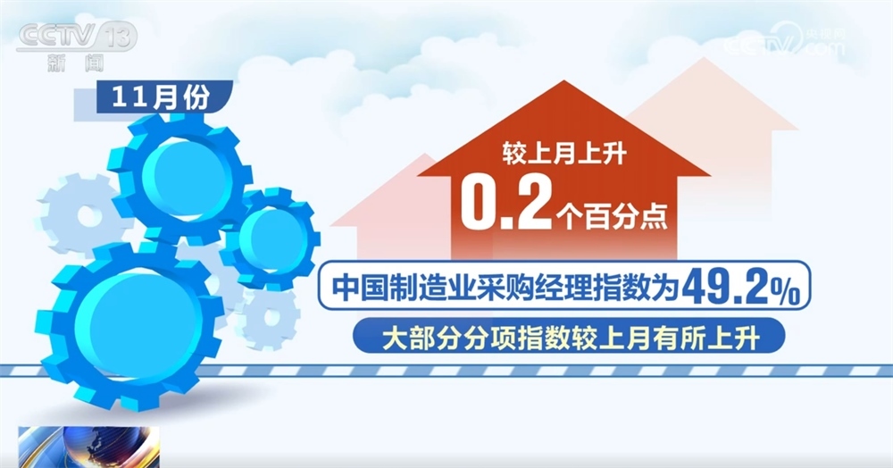 11月份中國制造業(yè)采購經(jīng)理指數(shù)為49.2%,較上月上升0.2個百分點(diǎn),大部分分項指數(shù)較上月有所上升。