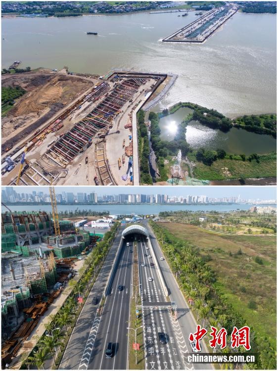 2025年12月18日,海南自由貿(mào)易港正式啟動全島封關(guān)。近年來,海南自貿(mào)港建設(shè)在利好政策帶動下不斷刷新“自貿(mào)港速度”,一個個重大項目、重點園區(qū)拔地而起,直觀呈現(xiàn)海南自貿(mào)港的蓬勃生機。這里正成為中國對外開放的新前沿、互利合作的新熱土和推動經(jīng)濟全球化的新引擎。上資料圖為2019年6月19日的??谖拿鳀|越江隧道施工現(xiàn)場,下資料圖為2025年12月7日已建成通車的海南省首條跨越南渡江隧道——文明東隧道。(拼版圖,無人機照片)
