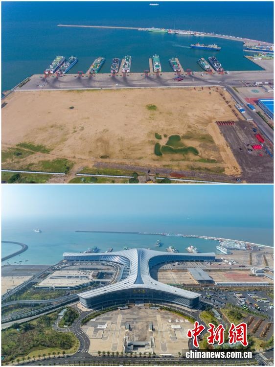 2025年12月18日,海南自由貿(mào)易港正式啟動全島封關(guān)。近年來,海南自貿(mào)港建設(shè)在利好政策帶動下不斷刷新“自貿(mào)港速度”,一個個重大項目、重點園區(qū)拔地而起,直觀呈現(xiàn)海南自貿(mào)港的蓬勃生機。這里正成為中國對外開放的新前沿、互利合作的新熱土和推動經(jīng)濟全球化的新引擎。上資料圖為2018年9月29日的??谛潞L裝碼頭客運綜合樞紐站項目建設(shè)地塊,下資料圖為2025年12月5日已投入使用的??谛潞L裝碼頭客運綜合樞紐站。(拼版圖,無人機照片)