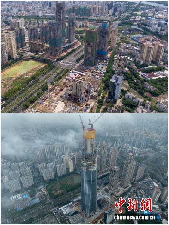 2025年12月18日,海南自由貿(mào)易港正式啟動全島封關(guān)。近年來,海南自貿(mào)港建設(shè)在利好政策帶動下不斷刷新“自貿(mào)港速度”,一個個重大項目、重點園區(qū)拔地而起,直觀呈現(xiàn)海南自貿(mào)港的蓬勃生機。這里正成為中國對外開放的新前沿、互利合作的新熱土和推動經(jīng)濟全球化的新引擎。上資料圖為2020年8月21日因故停工的“海南第一高樓”海南中心項目,下資料圖為2025年12月16日海南中心項目順利完成塔樓核心筒結(jié)構(gòu)封頂。(拼版圖,無人機照片)