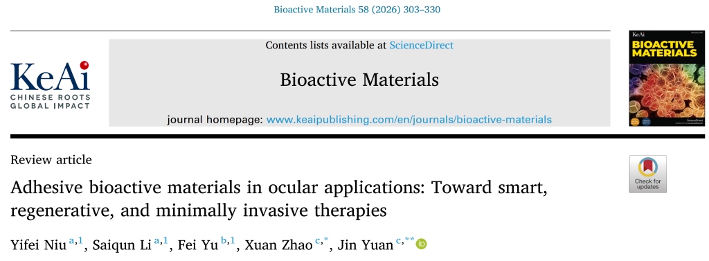 近日,首都醫(yī)科大學(xué)附屬北京同仁醫(yī)院院長(zhǎng)袁進(jìn)教授團(tuán)隊(duì)在新一代眼科“生物膠水”研究領(lǐng)域取得重要進(jìn)展,有望破解傳統(tǒng)眼科手術(shù)縫線帶來的一系列風(fēng)險(xiǎn)難題,也為這類材料從實(shí)驗(yàn)室走向臨床應(yīng)用提供了清晰的路徑指引。該研究論文發(fā)表在國(guó)際學(xué)術(shù)期刊《生物活性材料》上。
