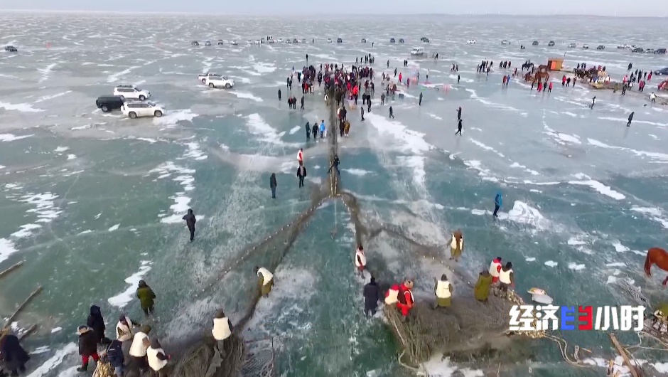 為了吸引游客,查干湖還推出私人訂制捕魚、冰下盲盒等新項目。100米長的掛網(wǎng),游客組隊拉拽,親手捕魚后,可以直接送進后廚做成鐵鍋燉。