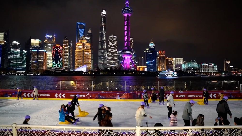 冰雪經(jīng)濟在上海持續(xù)升溫,眼前是陸家嘴與外灘的浦江兩岸風光,腳下是上海首個建在江面上的冰場。隨著近日“北外灘江畔冰雪季”啟動,上海首個江上冰場對外營業(yè),冰雪運動再度點燃了這里的冬日激情。