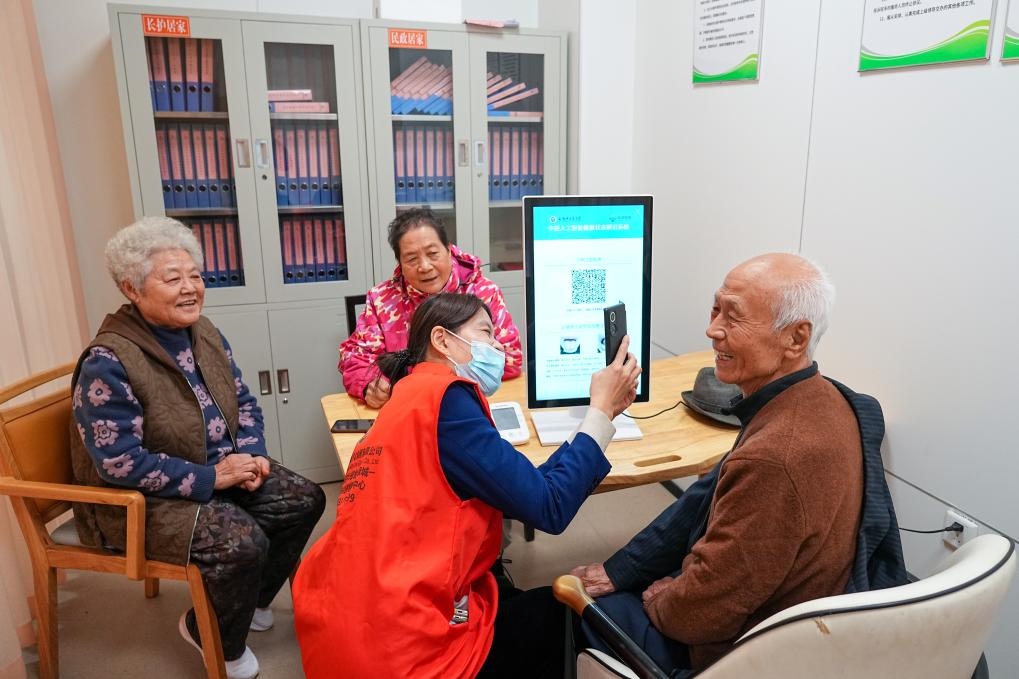 2025年10月,老人們在山東省淄博市張店區(qū)一社區(qū)日間護理中心測量健康數(shù)據(jù)。新華社記者 朱崢 攝