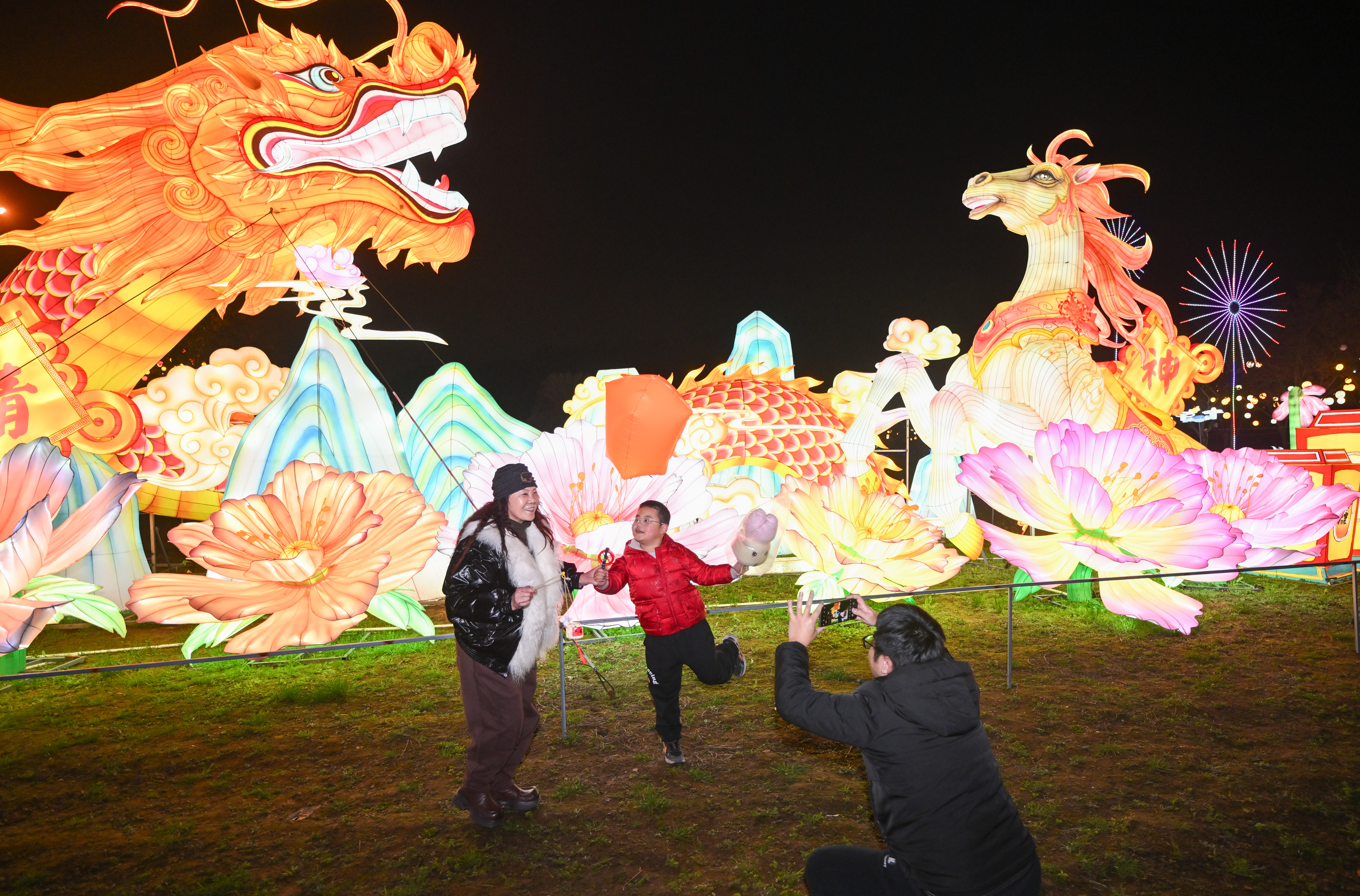 ▲銅梁第十二屆龍燈藝術(shù)節(jié)現(xiàn)場(chǎng),市民與《龍馬精神》組燈合影。記者 謝智強(qiáng) 攝/視覺(jué)重慶