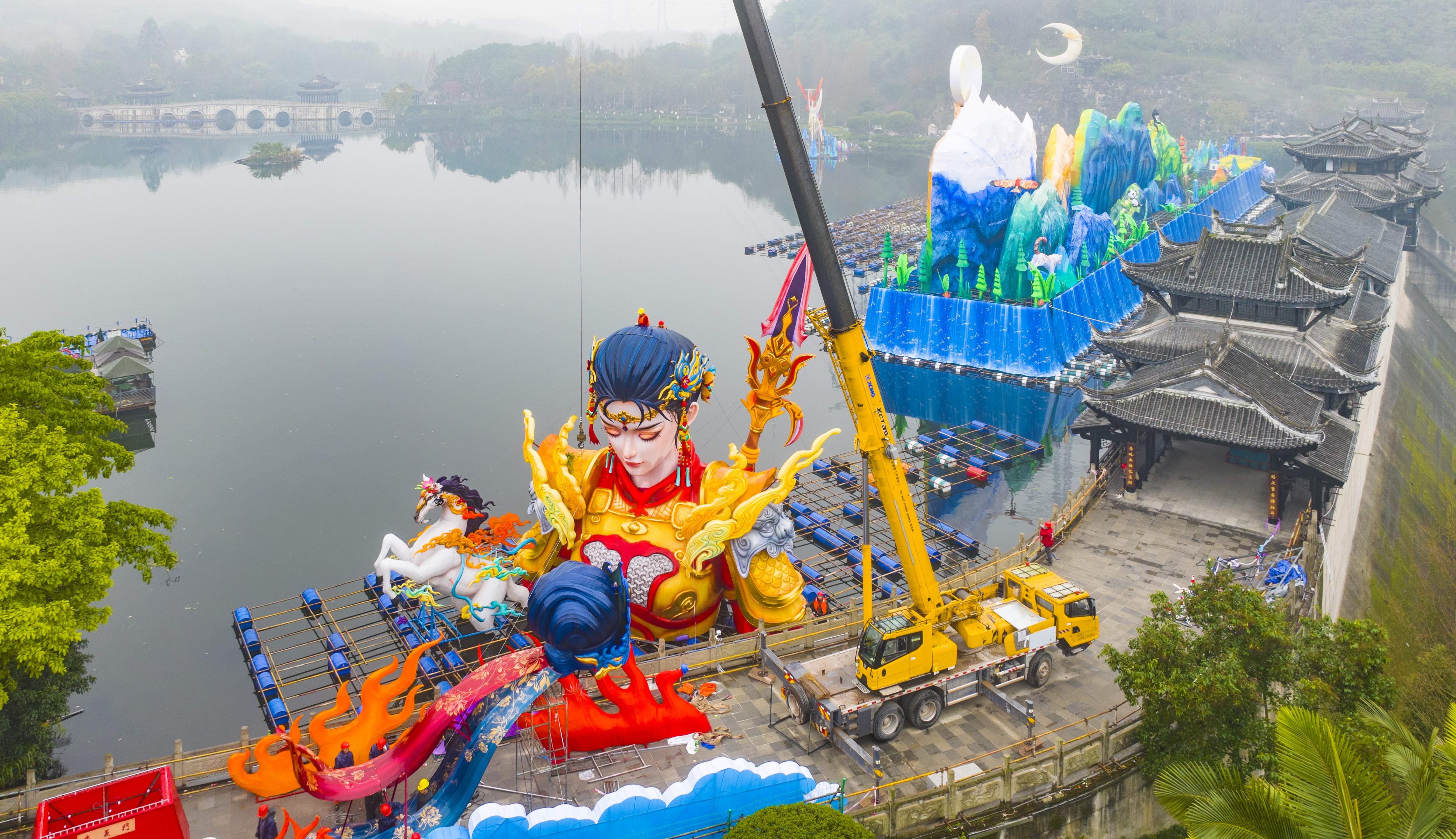 ▲2026重慶市新春燈會(huì)——“禧歡霓”園博園大型水上燈會(huì)現(xiàn)場(chǎng),工作人員正在加緊施工。記者 齊嵐森 攝/視覺(jué)重慶