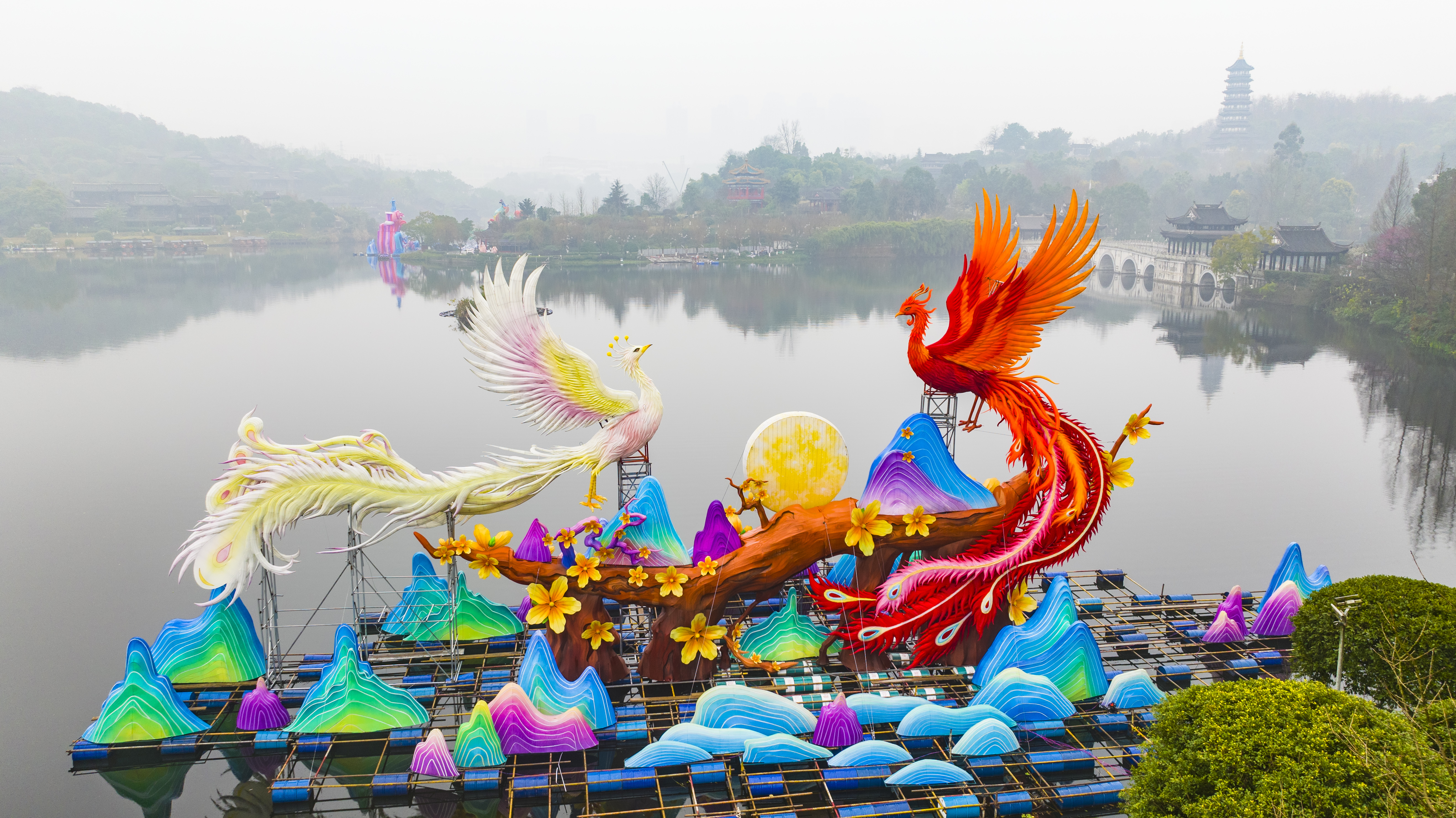 ▲重慶園博園,2026重慶市新春燈會(huì)——“禧歡霓”園博園大型水上燈會(huì)現(xiàn)場(chǎng),來(lái)自重慶、自貢兩地的400余名匠人正并肩趕工,一盞盞色彩斑斕的燈組令人賞心悅目,新春氛圍感撲面而來(lái)。(無(wú)人機(jī)照片)記者 齊嵐森 攝/視覺(jué)重慶