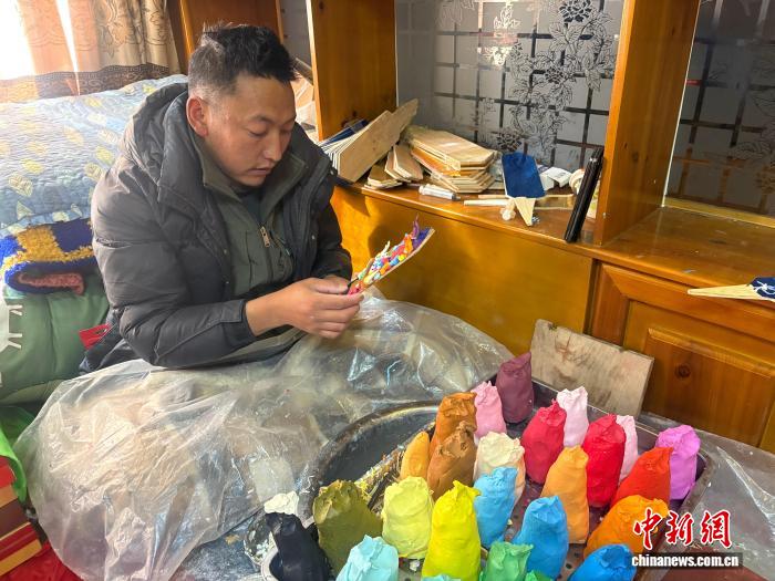 中新網(wǎng)拉薩2月5日電(多吉卓瑪 旦增尼瑪)春節(jié)、藏歷新年將至,西藏自治區(qū)拉薩市大街小巷年貨豐富,節(jié)日氛圍濃厚。在拉薩市區(qū),來(lái)自日喀則市仁布縣普松鄉(xiāng)的非物質(zhì)文化遺產(chǎn)代表性傳承人羅布,正帶著徒弟們,用古老的技藝,為高原佳節(jié)增添一抹獨(dú)特的非遺韻味。