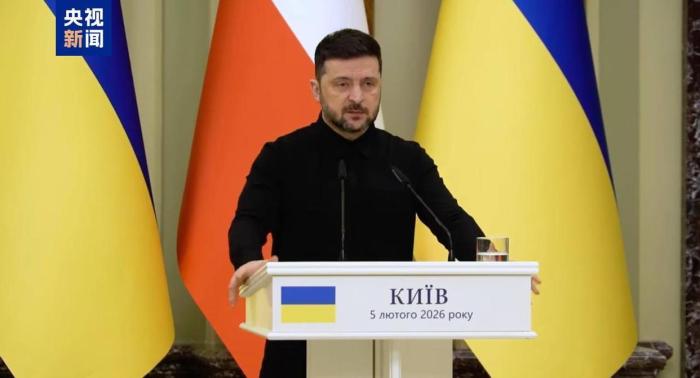 △當(dāng)?shù)貢r(shí)間2月5日,烏總統(tǒng)澤連斯基與來訪的波蘭總理圖斯克會(huì)晤后舉行發(fā)布會(huì)。