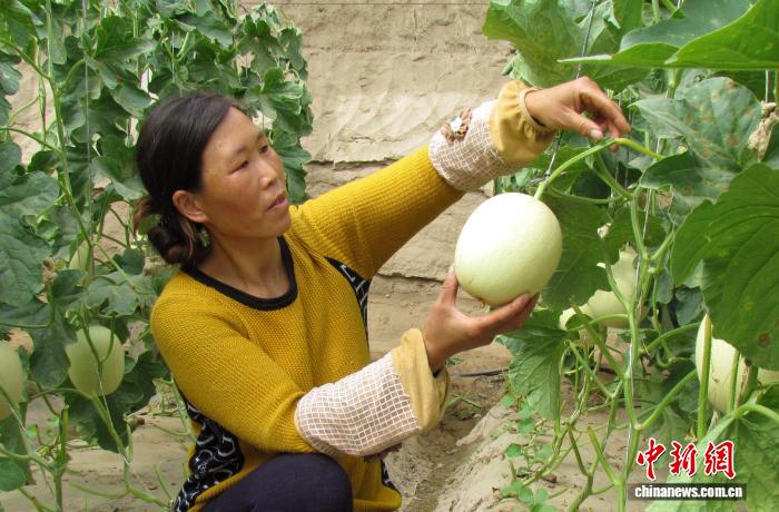 中新網(wǎng)蘭州2月9日電 (馬愛彬)原本緊貼地面生長的臺(tái)灣“玉菇”甜瓜,在甘肅省武威市民勤縣的溫室大棚里換了“生長姿態(tài)”,經(jīng)悉心牽引上架成為吊瓜。瓜藤沿繩攀援,果實(shí)懸垂半空,在沙漠邊緣的暖棚中積淀著飽滿甜意,也為當(dāng)?shù)剜l(xiāng)親的新春日子攢下實(shí)實(shí)在在的增收底氣。
