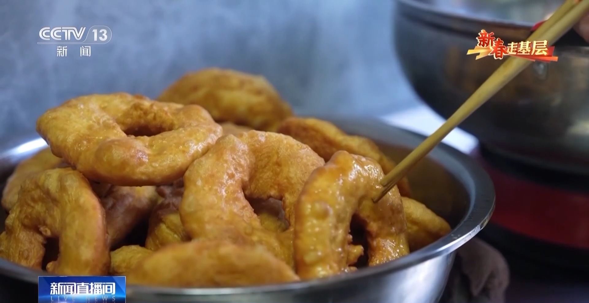 要過年了,大家忙著到集市上置辦年貨,把房前屋后裝扮起來。陳喜明家里炸了油餅,油香、面香飄滿了整個(gè)屋子,大家規(guī)劃起了新生活。