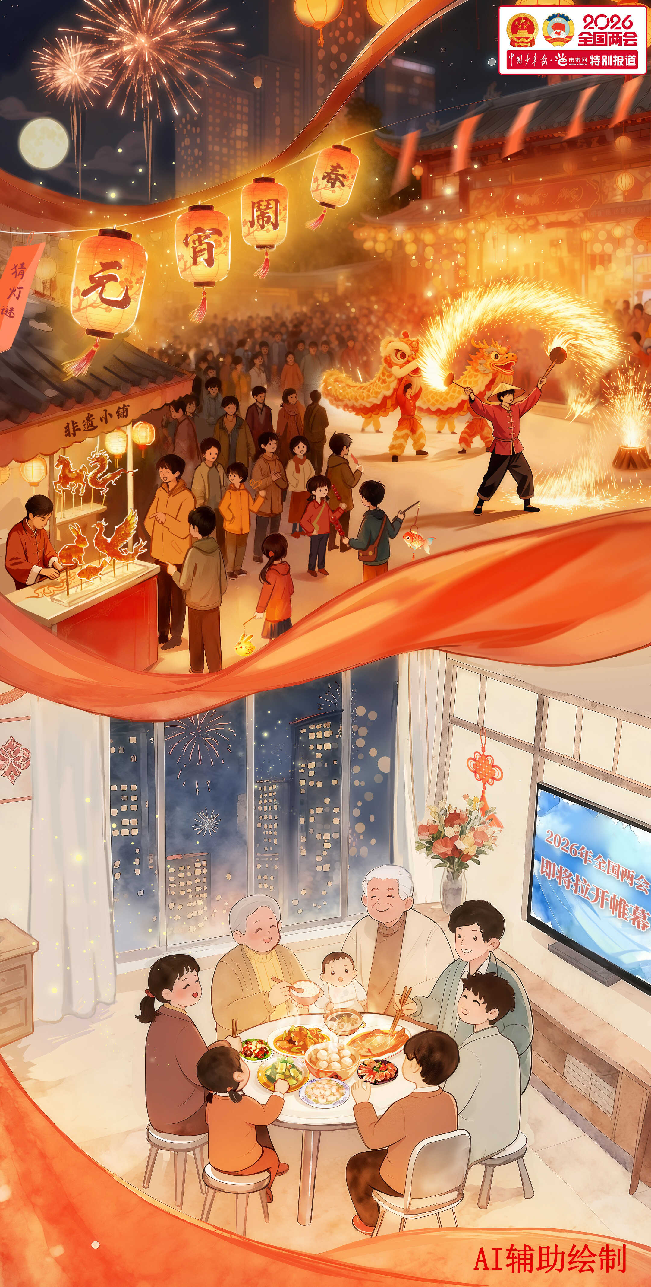 當(dāng)一盞盞花燈點(diǎn)亮城市街巷,當(dāng)一碗碗湯圓、元宵端上萬(wàn)家餐桌,2026年元宵佳節(jié)如約而至。燈火璀璨處,有孩童提燈嬉鬧的歡聲笑語(yǔ),有長(zhǎng)輩圍爐話家常的其樂(lè)融融,更有無(wú)數(shù)奮斗者收拾行囊、即將奔赴遠(yuǎn)方的身影。而在北京,一場(chǎng)備受關(guān)注與期待的春日盛會(huì)——全國(guó)兩會(huì),也將在明天(3月4日)拉開(kāi)帷幕。