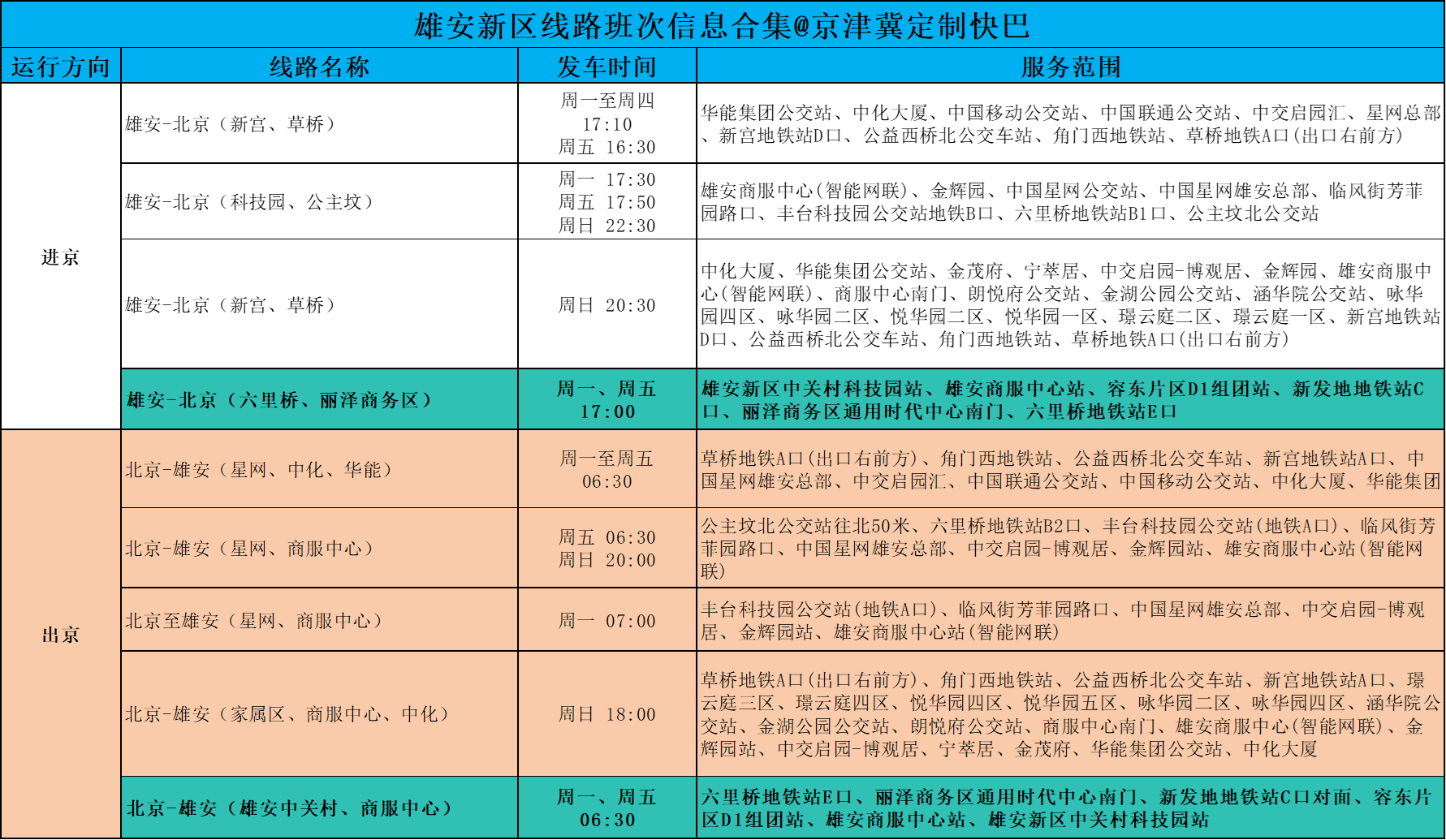 北京往返雄安線路聚焦通勤核心需求,站點覆蓋兩地關(guān)鍵交通樞紐及人員、產(chǎn)業(yè)密集區(qū)域。