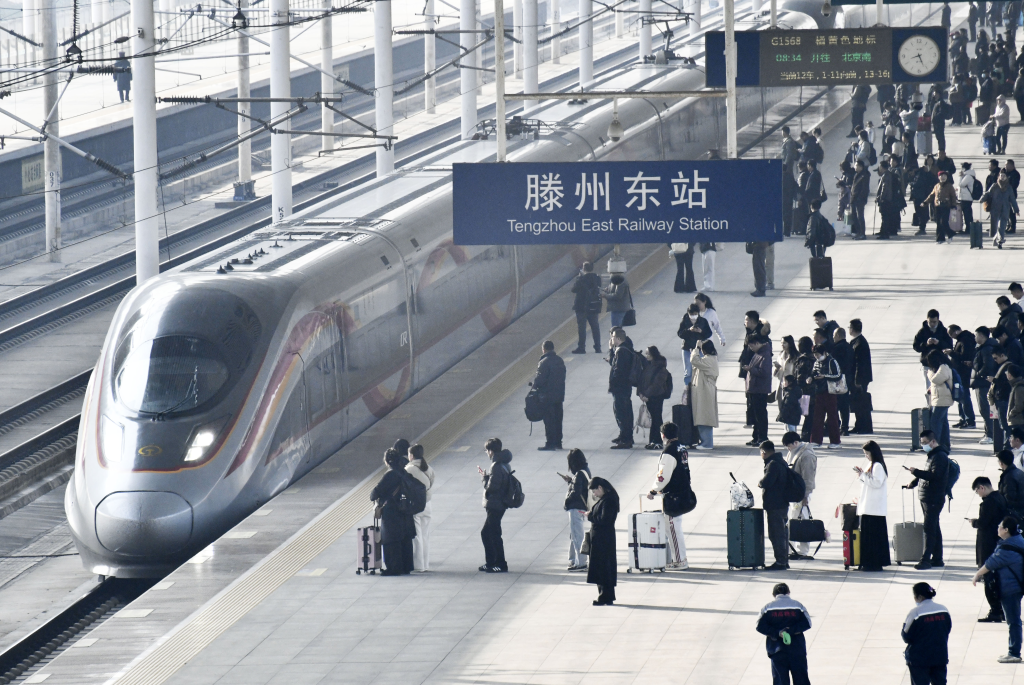 3月13日,旅客在山東省棗莊市滕州東站乘車出行。新華社發(fā)(李宗憲攝)