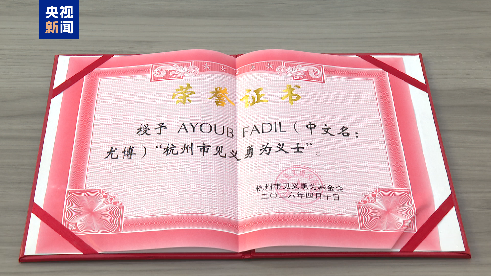 杭州市文明辦授予尤博“杭州好人”稱號。杭州市見義勇為基金會為其頒發(fā)見義勇為獎勵金5000元以及見義勇為證書,希望通過即時即獎的方式,讓勇者有榮,同時也傳遞“善良無國界”的精神。據(jù)悉,這是第一位獲評“杭州好人”的外籍友人。