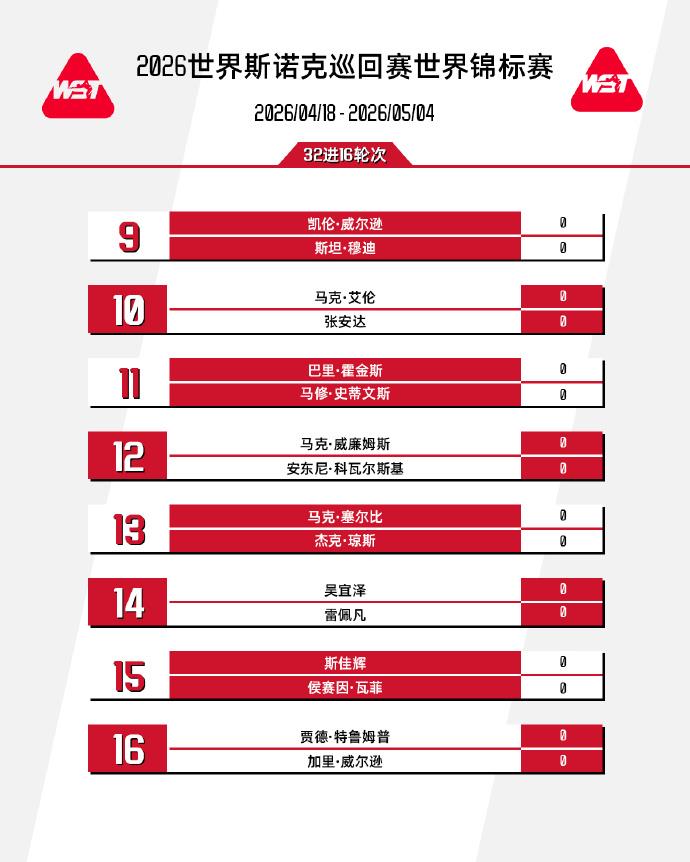 2026斯諾克世錦賽正賽簽表