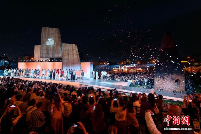 4月18日晚,福建泉州石獅打破傳統(tǒng)秀場(chǎng)的封閉空間,以承載千年海絲記憶的萬(wàn)壽塔為天然幕布,打造場(chǎng)景化、開放式、沉浸式的戶外時(shí)尚盛宴。(石獅市融媒體中心供圖)