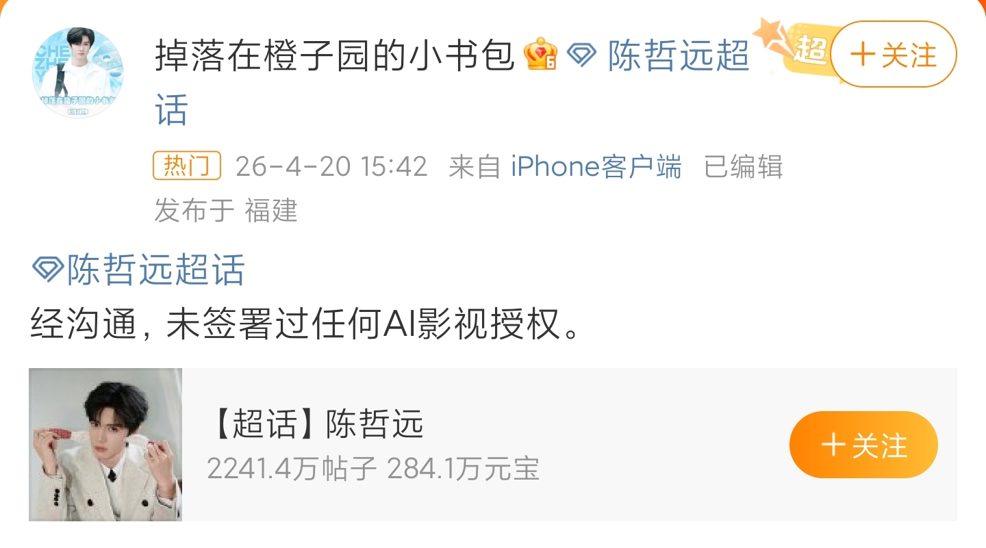 先有張若昀、陳哲遠(yuǎn)、于和偉、王楚然等明星方面紛紛發(fā)文否認(rèn),強(qiáng)調(diào)“未簽過任何AI相關(guān)授權(quán)”。后有網(wǎng)友強(qiáng)烈抵制,“所以演員休息了,給觀眾看AI?”“我為什么要開會(huì)員看假人?”