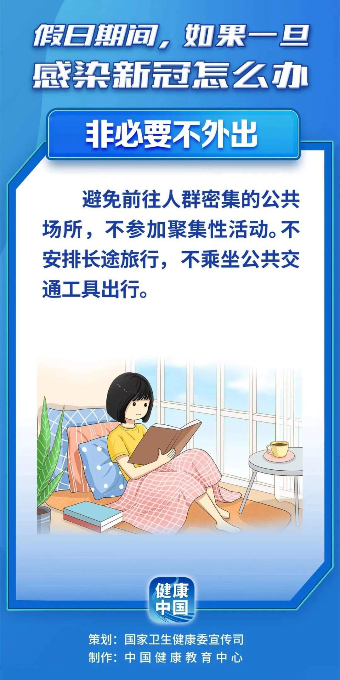 新型冠狀病毒感染實(shí)施“乙類乙管”后,倡導(dǎo)個(gè)人繼續(xù)保持良好衛(wèi)生習(xí)慣,加強(qiáng)個(gè)人防護(hù),按照要求分級(jí)分類就診?!犊傮w方案》指出,每個(gè)人都是自己健康第一責(zé)任人,大家要繼續(xù)堅(jiān)持戴口罩、勤洗手等良好衛(wèi)生習(xí)慣,在公共場(chǎng)所保持人際距離,及時(shí)完成疫苗和加強(qiáng)免疫接種。