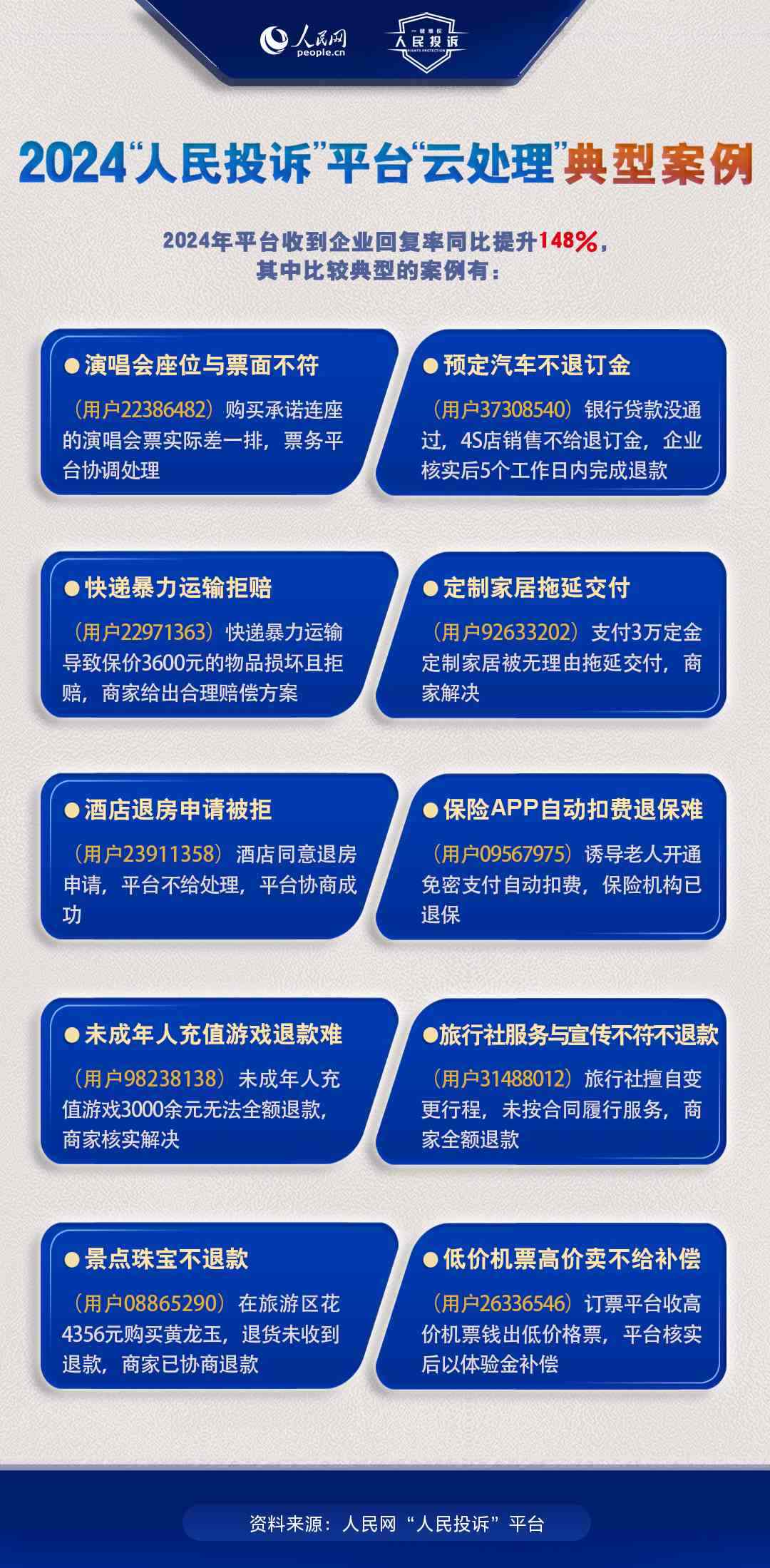 一年來,包含上述典型案例的各消費領域投訴通過“人民投訴”平臺得到了有效解決,消費者實現(xiàn)了高效、高質(zhì)量維權(quán)。
