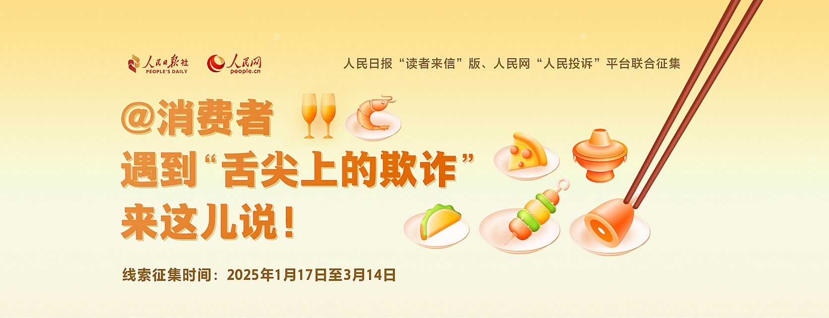 牛肉干里不含牛肉,無糖產品其實含糖,配料表造假、營養(yǎng)成分表不準確……你遇到過嗎?“以假亂真”“以次充好”為代表的食品欺詐,嚴重損害消費者利益,擾亂市場公平競爭秩序。為筑牢食品安全防線,增強消費者信心,即日起,人民日報“讀者來信”版與人民網(wǎng)“人民投訴”平臺聯(lián)合發(fā)起相關線索征集,歡迎您掃描上方海報二維碼進入征集頁面留言或提供調查線索至人民日報“讀者來信”版(郵箱:dzlx@peopledaily.cn 傳真:010-65368495)。線索征集時間截至2025年3月14日。