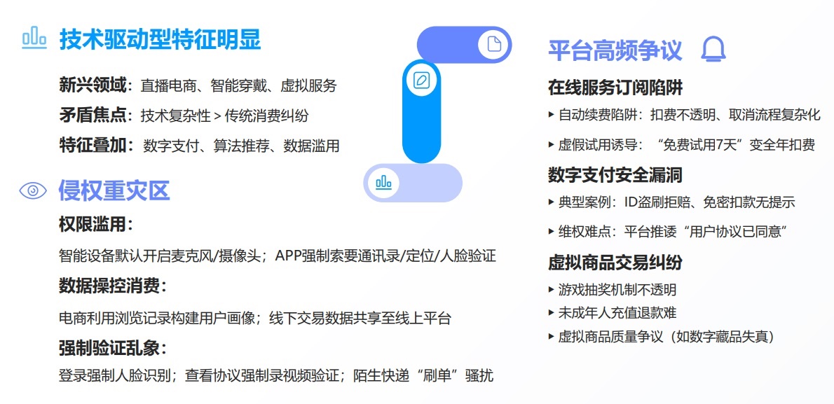 與此同時(shí),隨著直播電商、智能穿戴、虛擬服務(wù)等數(shù)字化消費(fèi)的爆發(fā)式增長,相關(guān)爭議也呈現(xiàn)上升趨勢。
