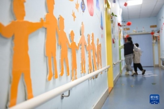 3月29日,一名老師帶著自閉癥兒童進(jìn)教室上課。