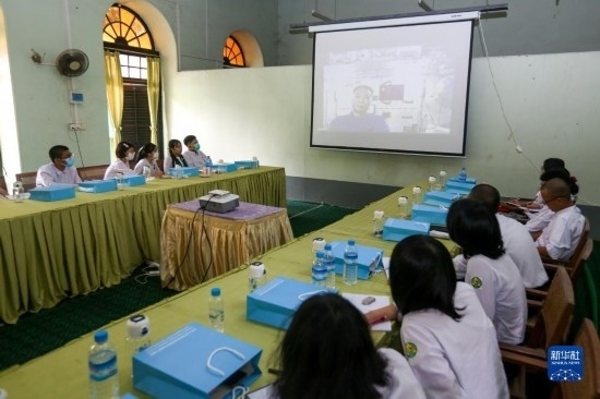 這是4月20日在緬甸仰光一所高中拍攝的“天宮對話”活動(dòng)線上課堂現(xiàn)場。