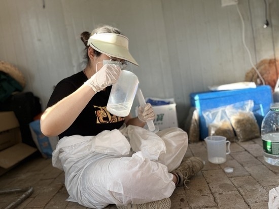 2022年7月,2022級碩士研究生張千子協(xié)助同學楊順然在科技小院進行采樣工作。圖片由受訪者提供