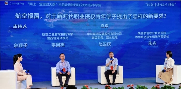 人民網(wǎng)漢中5月19日電 (記者林露 崔競(jìng)文 王鑫)夢(mèng)想閃光,青春遠(yuǎn)航。18日,“人民網(wǎng)+”客戶端“同上一堂思政大課”欄目走進(jìn)陜西航空職業(yè)技術(shù)學(xué)院,在校園內(nèi)開展了豐富多彩的思政實(shí)踐系列活動(dòng),與來自全國(guó)各地的職業(yè)院校、航空領(lǐng)域代表企業(yè)的嘉賓共話“技能青春·航空強(qiáng)國(guó)”。
