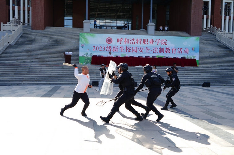 5500余名新生在軍訓(xùn)場上,英姿颯爽朝氣蓬勃,呼和浩特市公安局反恐怖和特巡警支隊教官團隊,通過現(xiàn)場授課及實操演練相結(jié)合的方式進行了處突紅藍對抗演練(紅方為反恐怖和特巡警支隊民警,藍方為由反恐怖和特巡警支隊民警扮演的恐怖分子),指導(dǎo)學(xué)生在遇到危險情況下如何應(yīng)對。進一步增強大學(xué)生的安全防范意識和自我保護能力。