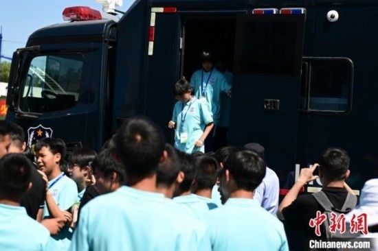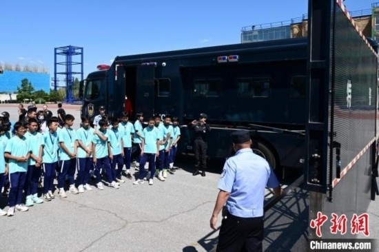 由北京市公安局支教民警組建并執(zhí)教的貴州黔西南州青少年校園足球男、女隊(duì)員共34人來到北京參加夏令營活動(dòng)。今天,隊(duì)員們觀看特警訓(xùn)練及警犬演示,現(xiàn)場體驗(yàn)警械武器和警車等裝備使用,感受首都公安風(fēng)采。