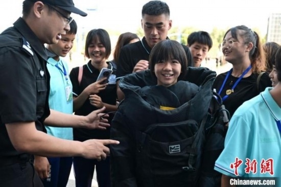 7月9日,隊(duì)員們觀看特警訓(xùn)練及警犬演示,現(xiàn)場體驗(yàn)警械武器和警車等裝備使用,民警講解安全防范知識(shí)。