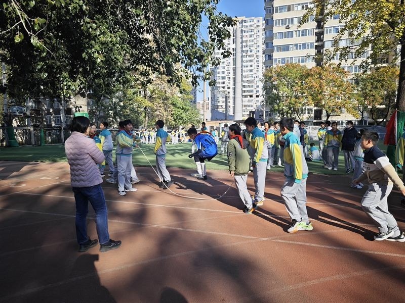 為了引導孩子們課間走出教室,北醫(yī)附小根據(jù)季節(jié)設(shè)計大型集體項目,比如秋季開展的跳長繩,老師們也參與進來搖繩,帶動更多孩子參加體育鍛煉。“讓學生在課間得到充分休息、活動,才能保證學生的課堂狀態(tài),從而促進課堂教育教學質(zhì)量提升?!碧飮⒈硎?。