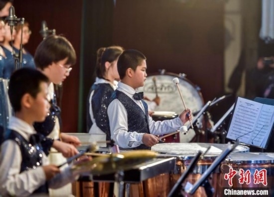 該交響管樂團(tuán)成立于2014年,平均年齡10歲,是一支非常年輕有朝氣的隊(duì)伍。中新網(wǎng)記者 劉新 攝