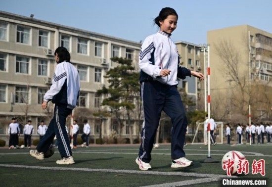圖為沈陽市第一三四中學(xué)濱河路分校學(xué)生在上體育課。中新網(wǎng)記者 于海洋 攝