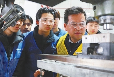 湖南省永州市新田縣產(chǎn)業(yè)開(kāi)發(fā)區(qū),新田縣職業(yè)中等專(zhuān)業(yè)學(xué)校學(xué)生在學(xué)習(xí)機(jī)床操作技術(shù)。劉貴雄攝(新華社發(fā))