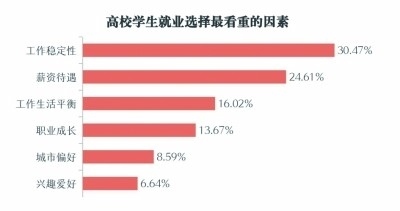 對(duì)我國(guó)東、中、西部地區(qū)7個(gè)省區(qū)市的14所本科院校、4所??圃盒#采w研究生、本科生、專科生三類群體,隨機(jī)抽樣的1829份調(diào)查問卷顯示,除工作穩(wěn)定性、薪資待遇外,工作生活平衡、職業(yè)成長(zhǎng)、所在城市、興趣愛好等,也是高校學(xué)生就業(yè)選擇時(shí)看重的因素。