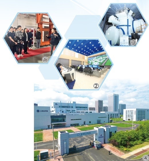 圖①:學(xué)生在“地面空間站”內(nèi)上課。本報(bào)記者 方 圓攝 圖②:學(xué)生在“地面空間站”內(nèi)觀看教學(xué)視頻。辛 然攝 圖③:大尺度綜合輻照環(huán)境模擬試驗(yàn)艙。本報(bào)記者 方 圓攝 圖④:空間環(huán)境地面模擬裝置外景。辛 然攝