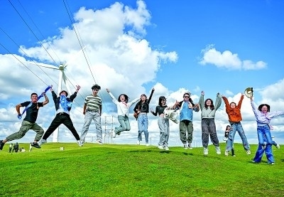8月22日,參加第三十屆海峽兩岸大學(xué)生新聞營的師生們在內(nèi)蒙古烏蘭察布市輝騰錫勒草原合影。新華社發(fā)