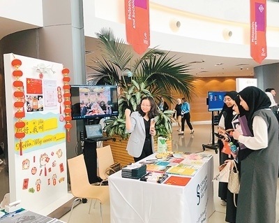 | 今年2月,張翠翠(左)參加索邦大學(xué)阿布扎比校區(qū)的開放日活動。(本文配圖由中國國際中文教育基金會提供) |